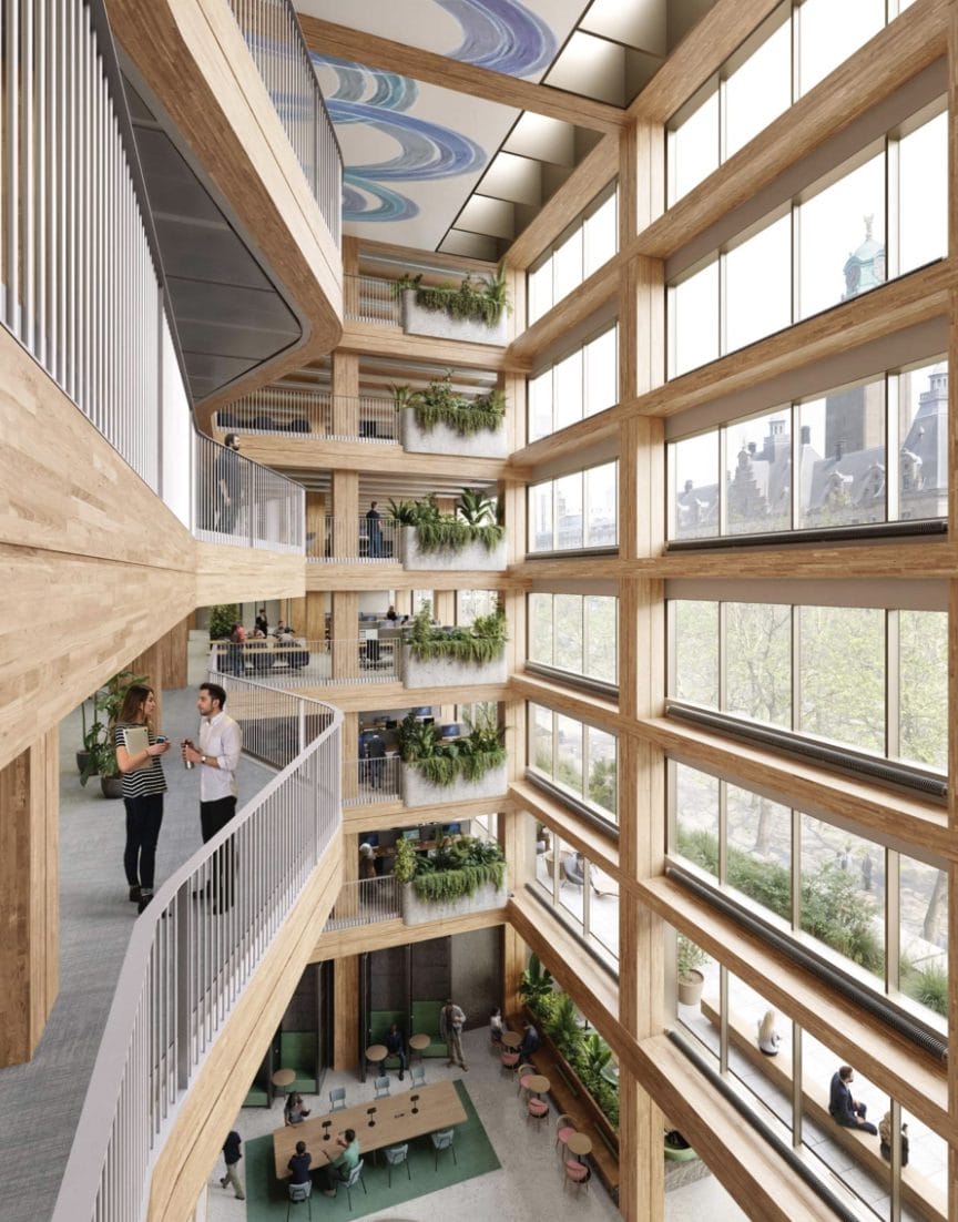 EDGE Olympic Amsterdam öffnete 2018 seine Türen und ist ein hypermodernes Vorzeigegebäude, das Nachhaltigkeit, Gesundheit und Wohlbefinden vereint. Als nachhaltiges Sanierungsprojekt hat dieses Gebäude ein BREEAM-Excellence-Zertifikat und wurde unter möglichst vielen kreislauforientierten Aspekten gebaut. Das Gebäudedesign schafft ein großes, offenes Ökosystem, in dem jeder mit jedem in Kontakt treten und problemlos eine Gemeinschaft von zukunftsorientierten Fachleuten bilden kann.