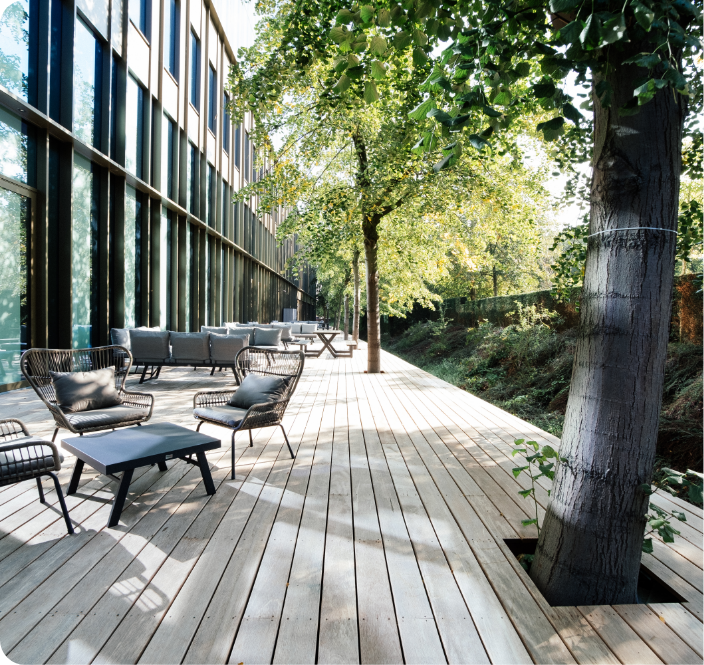 Relax, work or socialize on our terraces. Surrounded by greenery, it's your spot to power through work or just breathe. Open air, open mind.
