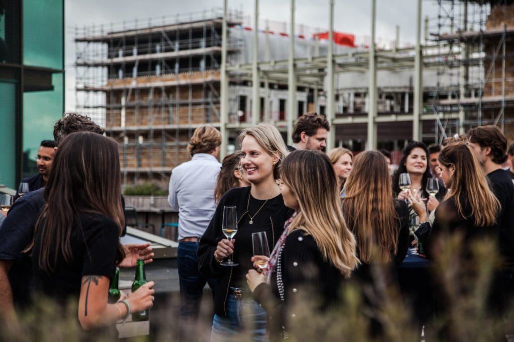 Networking-Event bei EDGE Workspaces in Amsterdam, das die Zusammenarbeit und die Gemeinschaft unter Startups fördert.